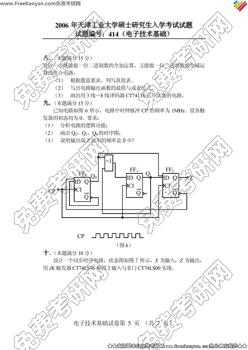 天津工业大学2006年考研真题-电子技术基础(414)(5)