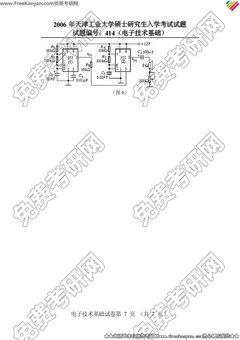 天津工业大学2006年考研真题-电子技术基础(414)(7)