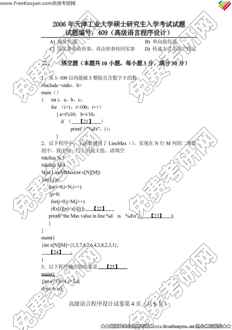 天津工业大学2006年考研真题-高级语言程序设计(409)(4)