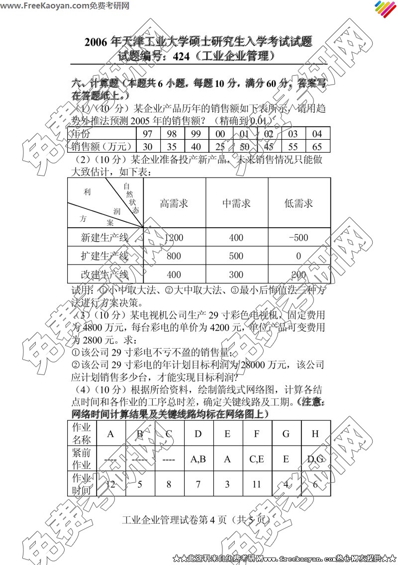 天津工业大学2006年考研真题-工业企业管理(424)(4)