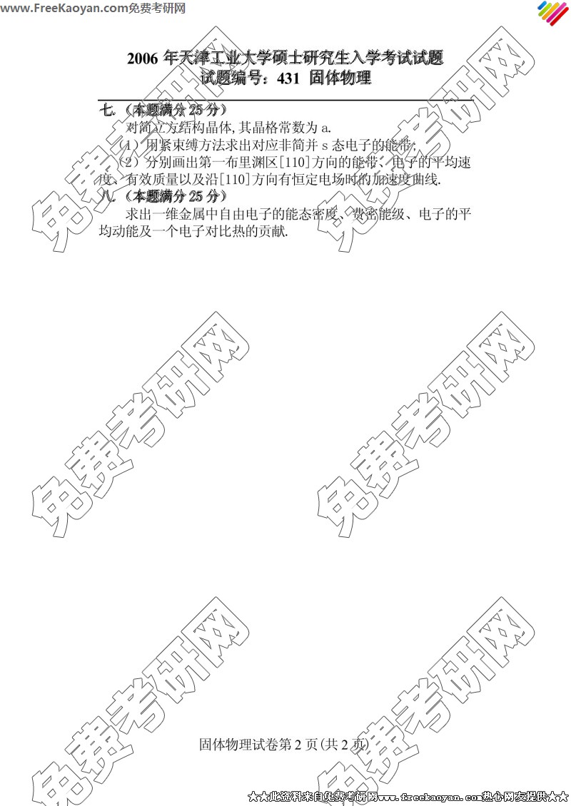 天津工业大学2006年考研真题-固体物理(431)(2)