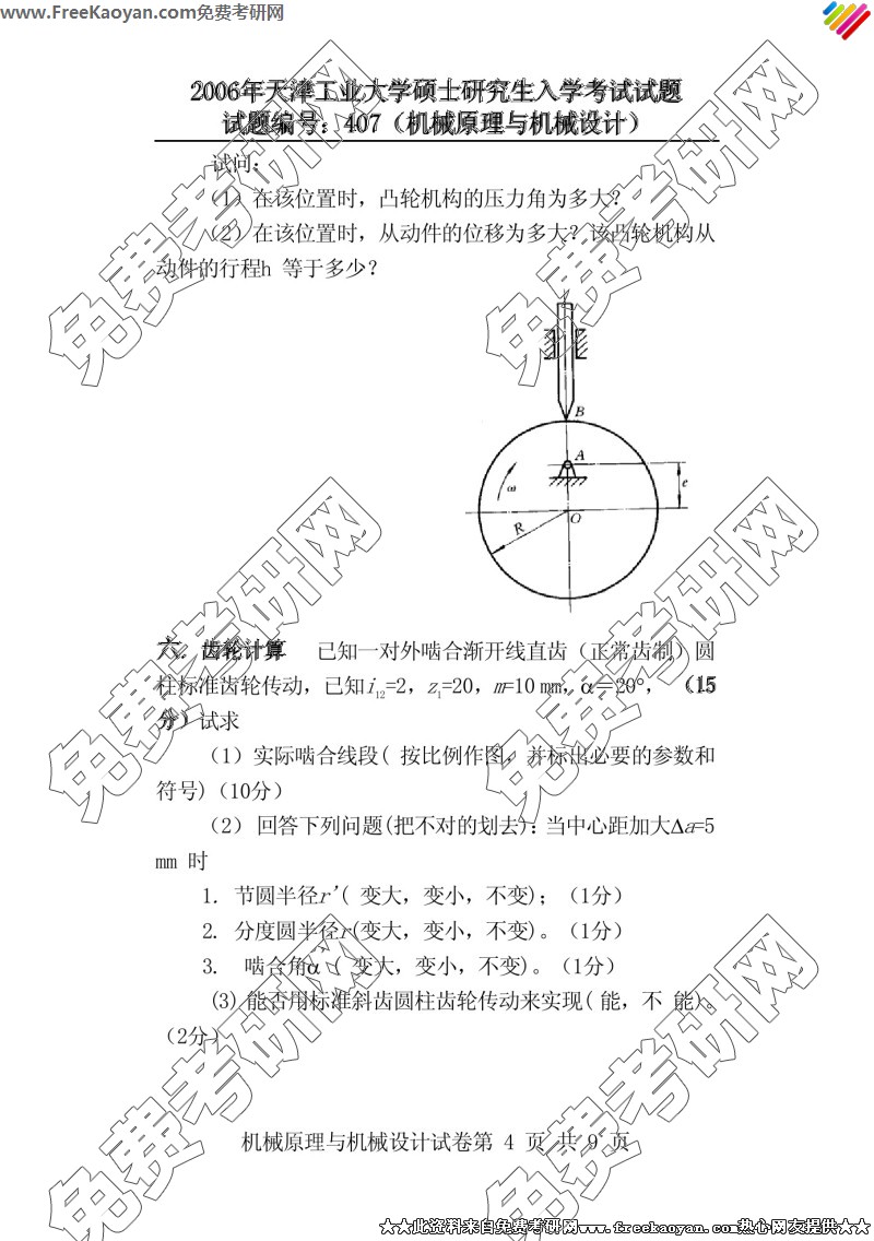 天津工业大学2006年考研真题-机械原理与机械设计(407)(4)