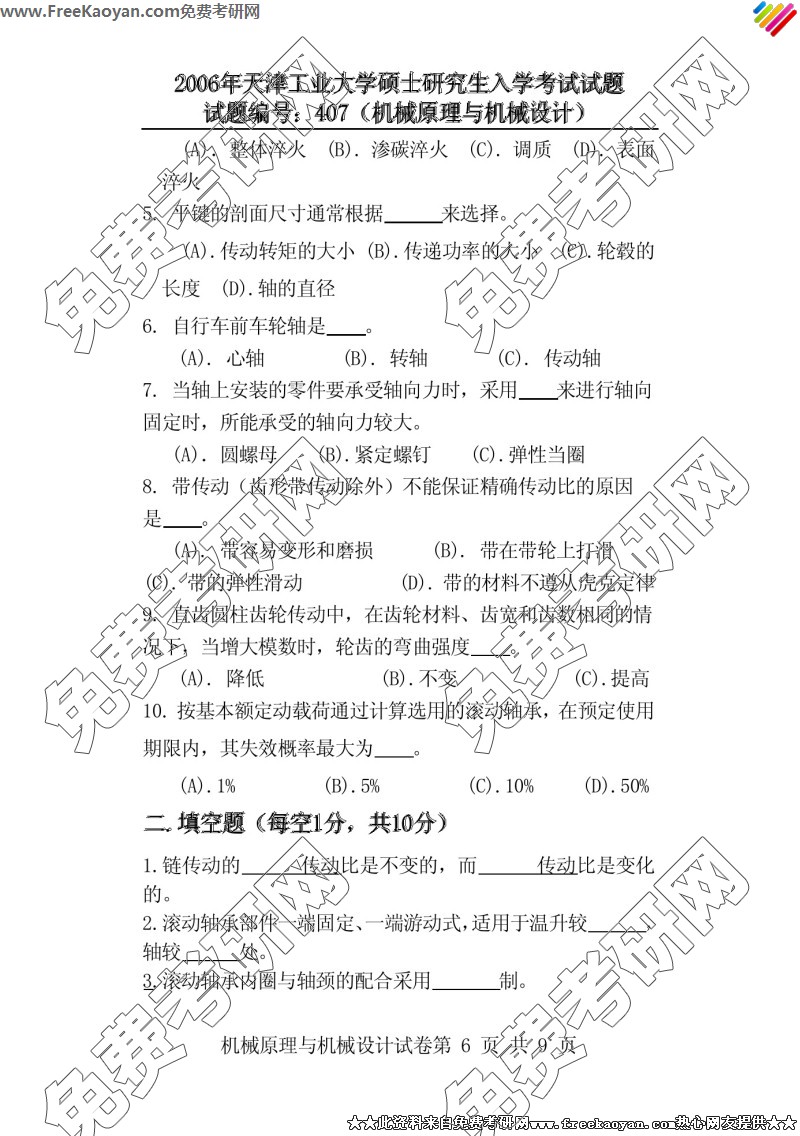 天津工业大学2006年考研真题-机械原理与机械设计(407)(6)