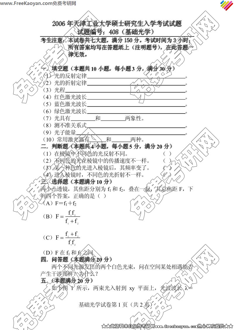 专业课考研经验 本站小编 FreeKaoyan 2018-01-23天津工业大学2006年考研真题-固体物理(431)