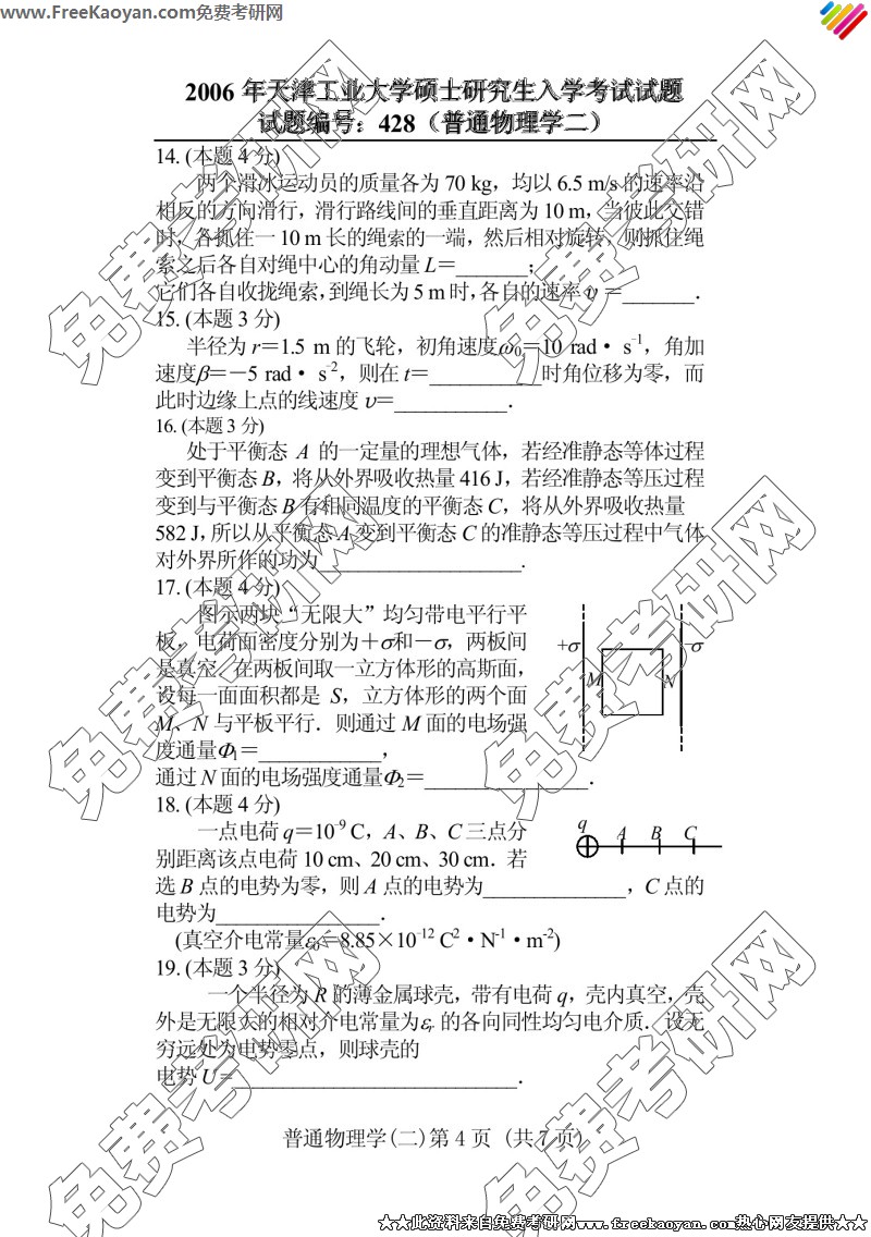 天津工业大学2006年考研真题-普通物理学二(428)(4)