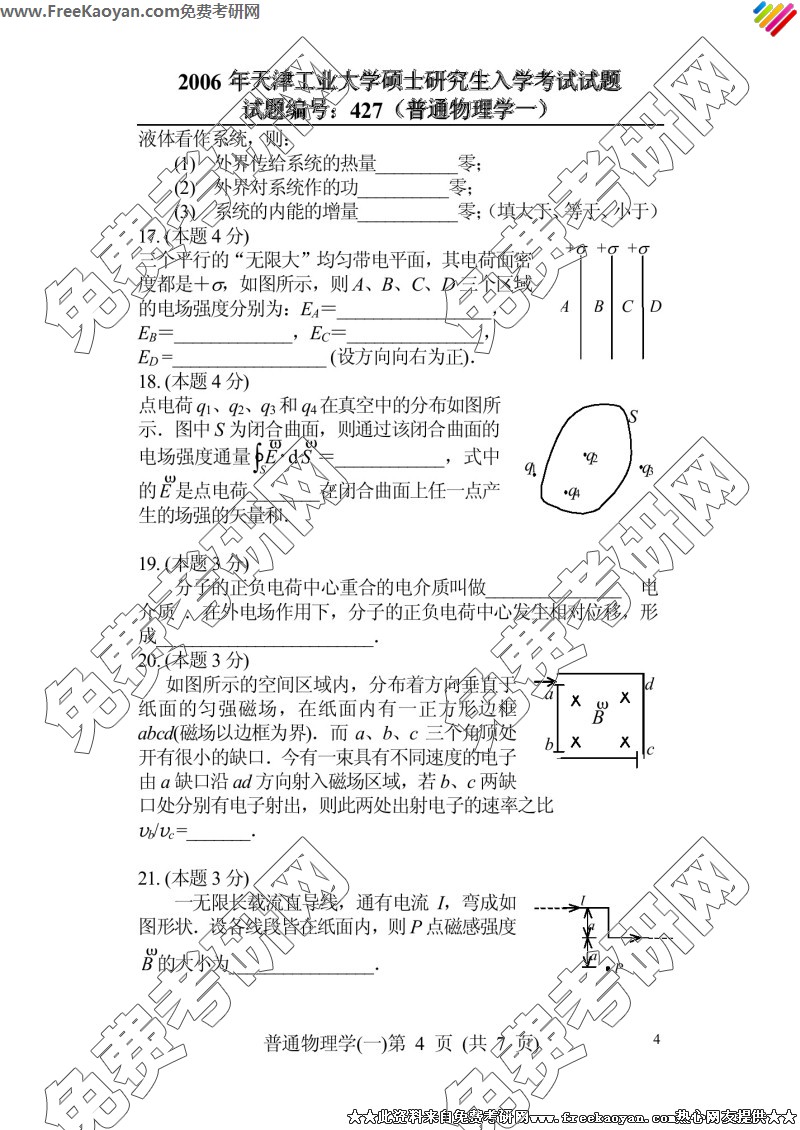 专业课考研经验 本站小编 FreeKaoyan 2018-01-23天津工业大学2006年考研真题-普通物理学二(428)