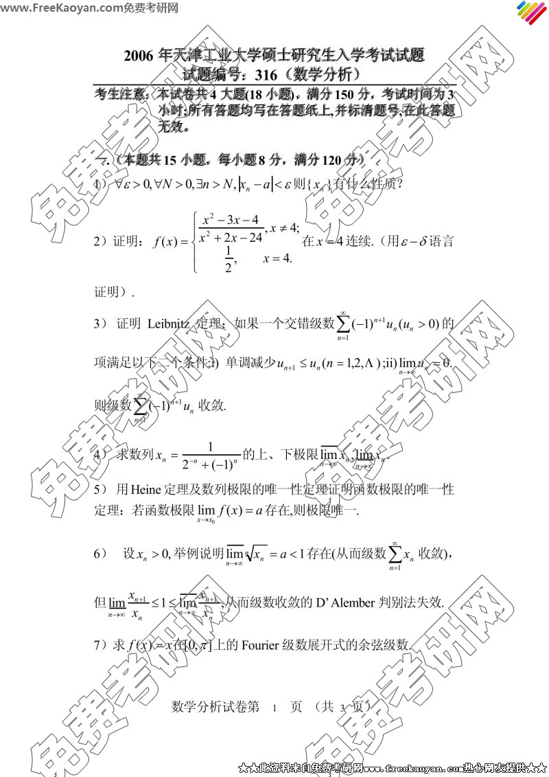专业课考研经验 本站小编 FreeKaoyan 2018-01-23天津工业大学2006年考研真题-基础光学(408)