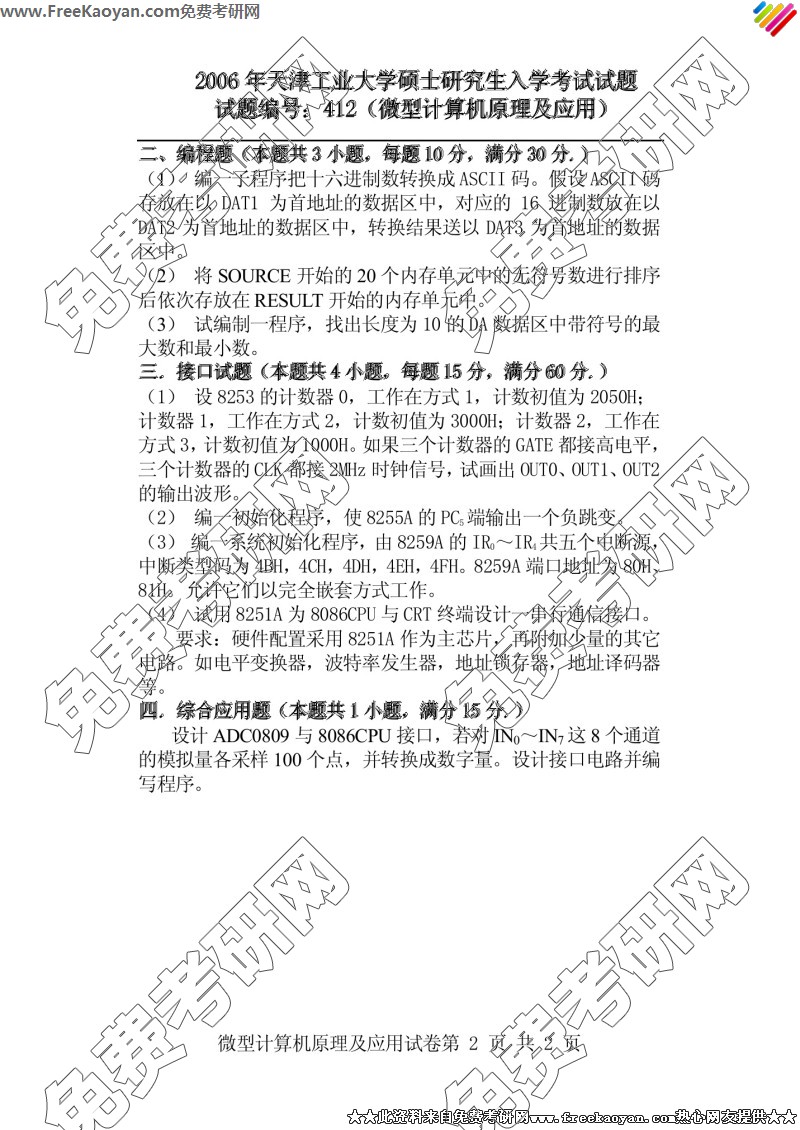 天津工业大学2006年考研真题-微机原理(412)(2)