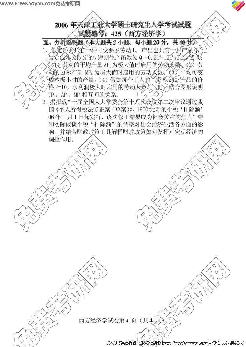 天津工业大学2006年考研真题-西方经济学(425)(4)