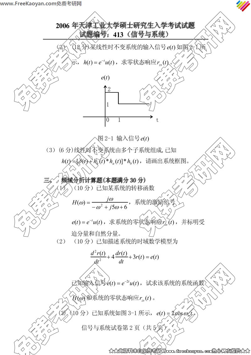 天津工业大学2006年考研真题-信号与系统(413)(2)