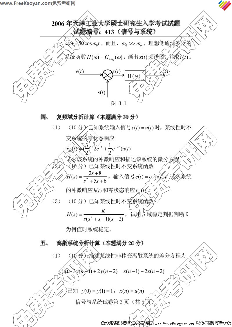 天津工业大学2006年考研真题-信号与系统(413)(3)