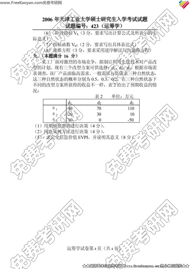 天津工业大学2006年考研真题-运筹学(423)(4)