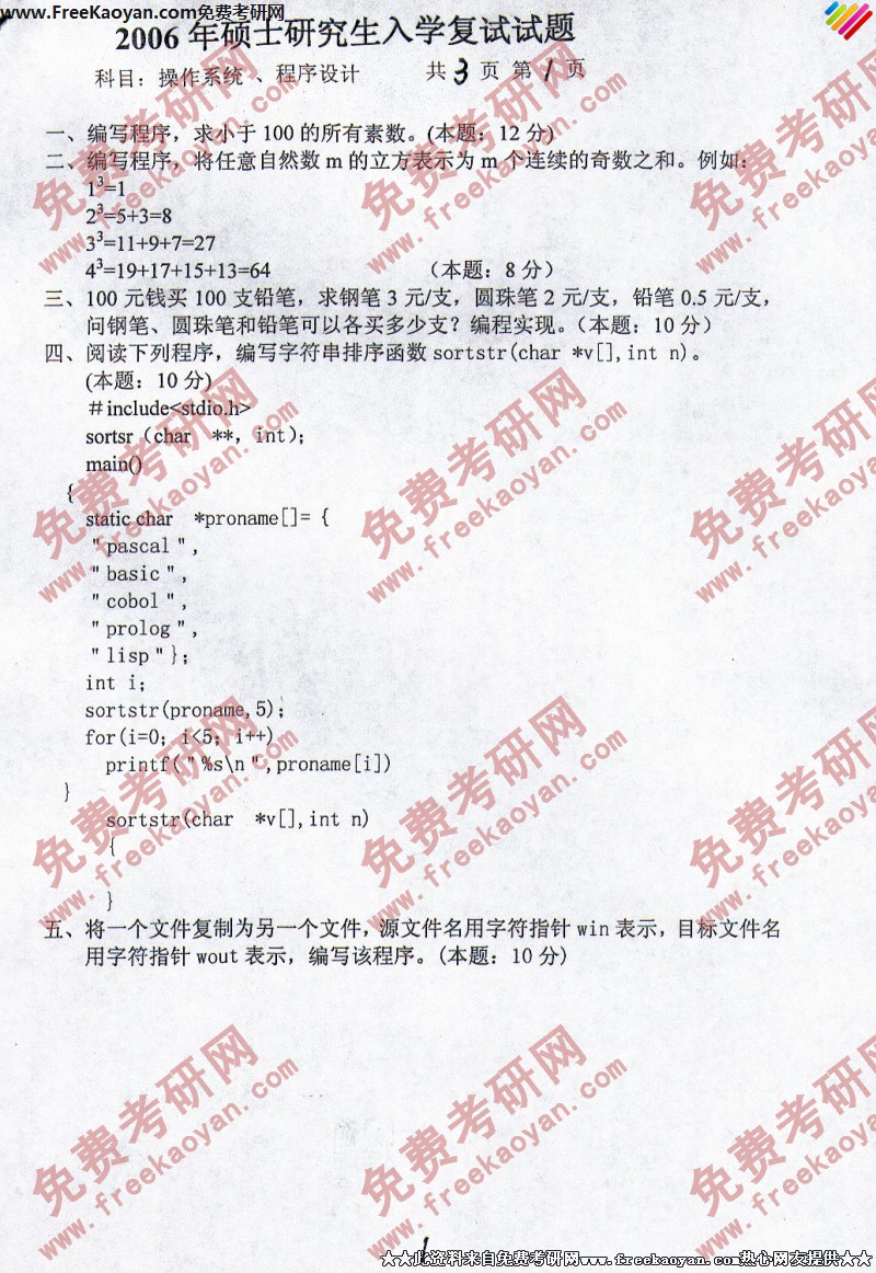 燕山大学2006年考研真题-复试操作系统、程序设计(C语言)