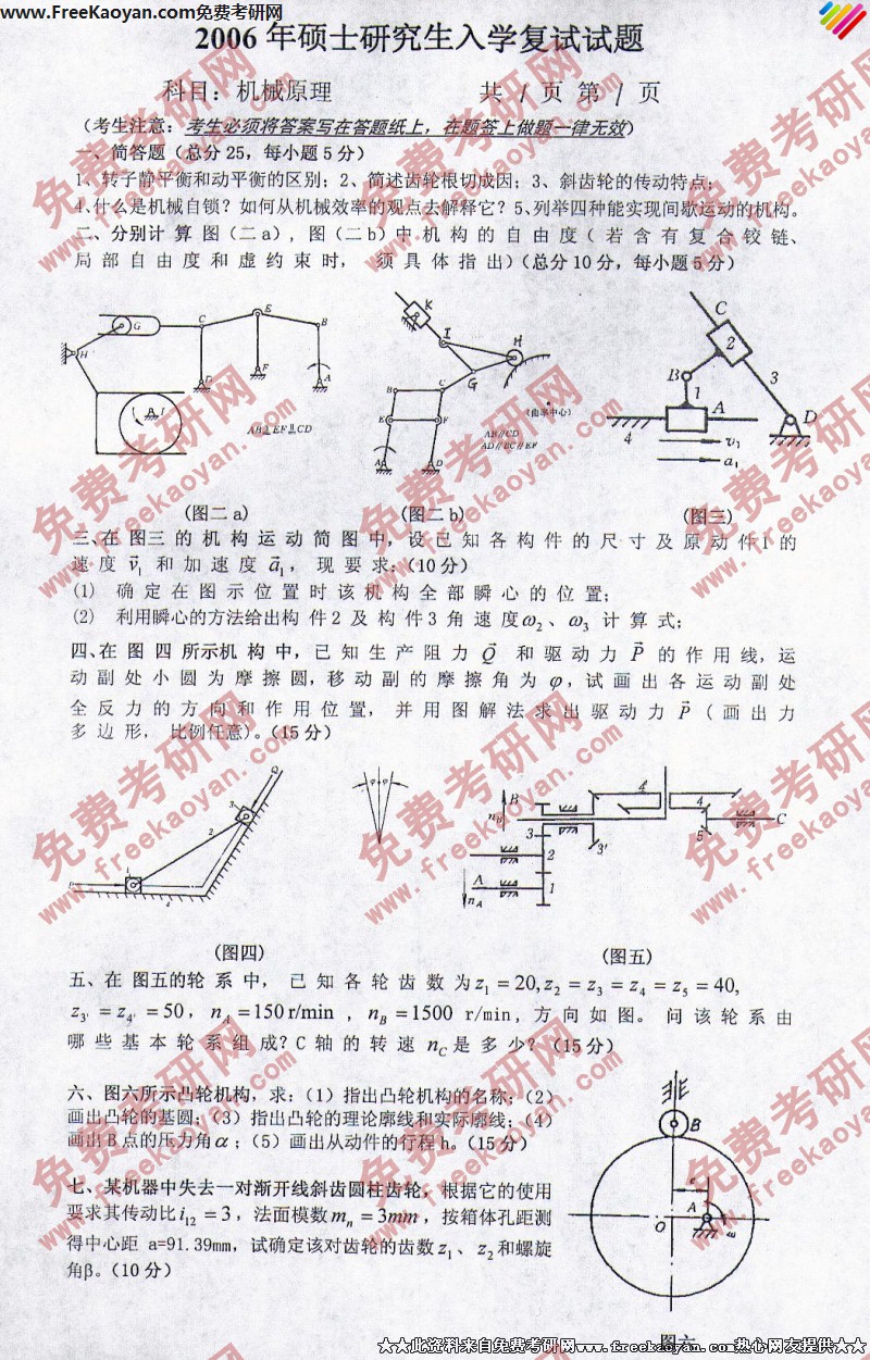 专业课考研经验 本站小编 FreeKaoyan 2018-01-23燕山大学2006年考研真题-复试机械设计