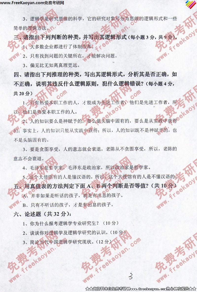 燕山大学2006年考研真题-复试逻辑学教程(3)