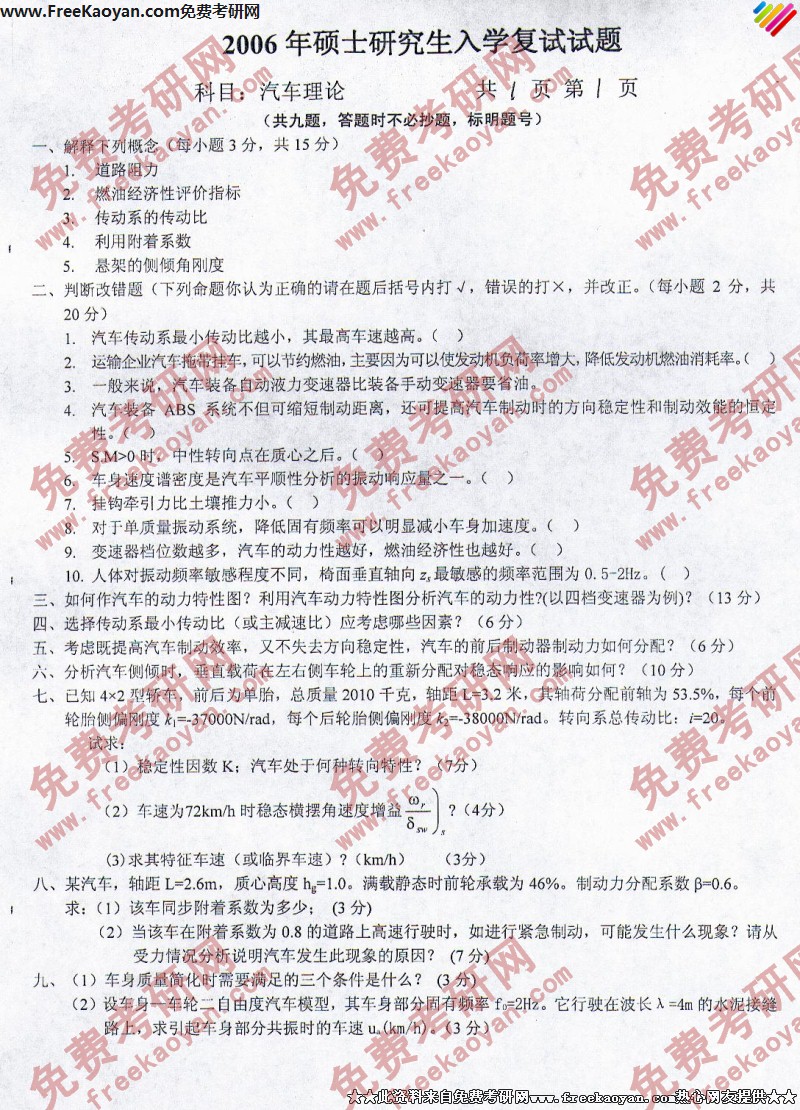 相关话题/复试 考研真题 燕山大学 汽车 理论