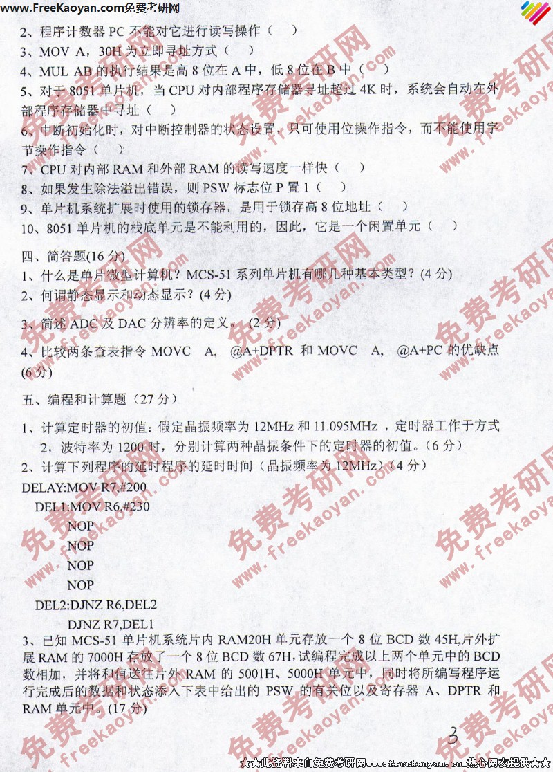 专业课考研经验 本站小编 FreeKaoyan 2018-01-23燕山大学2006年考研真题-复试数字控制技术