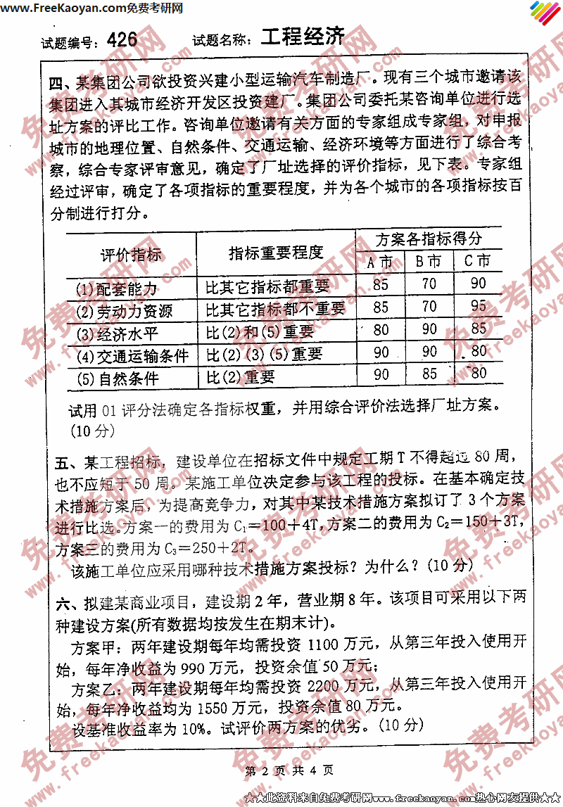 东南大学2005年考研真题-工程经济(2)