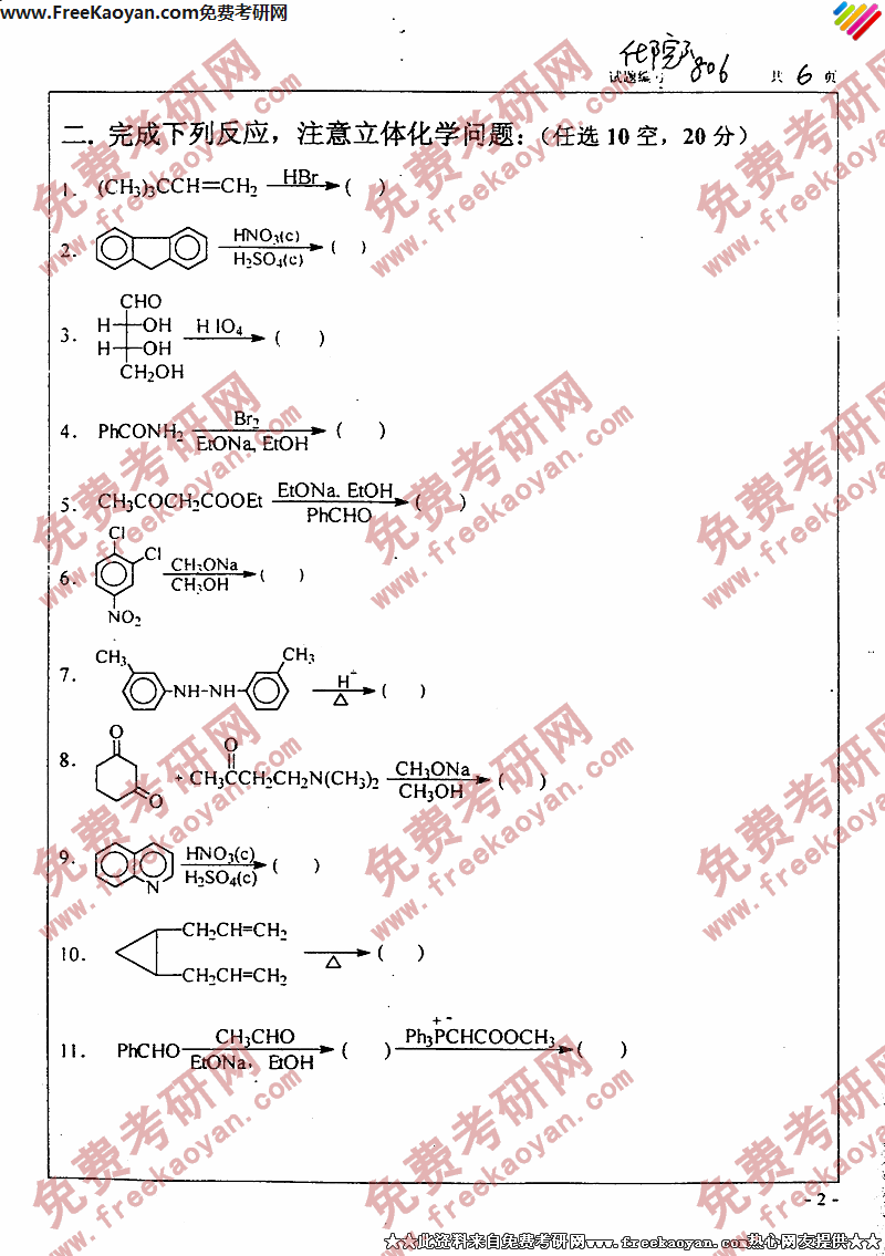 南京大学2003年考研真题-有机化学和物理化学(2)