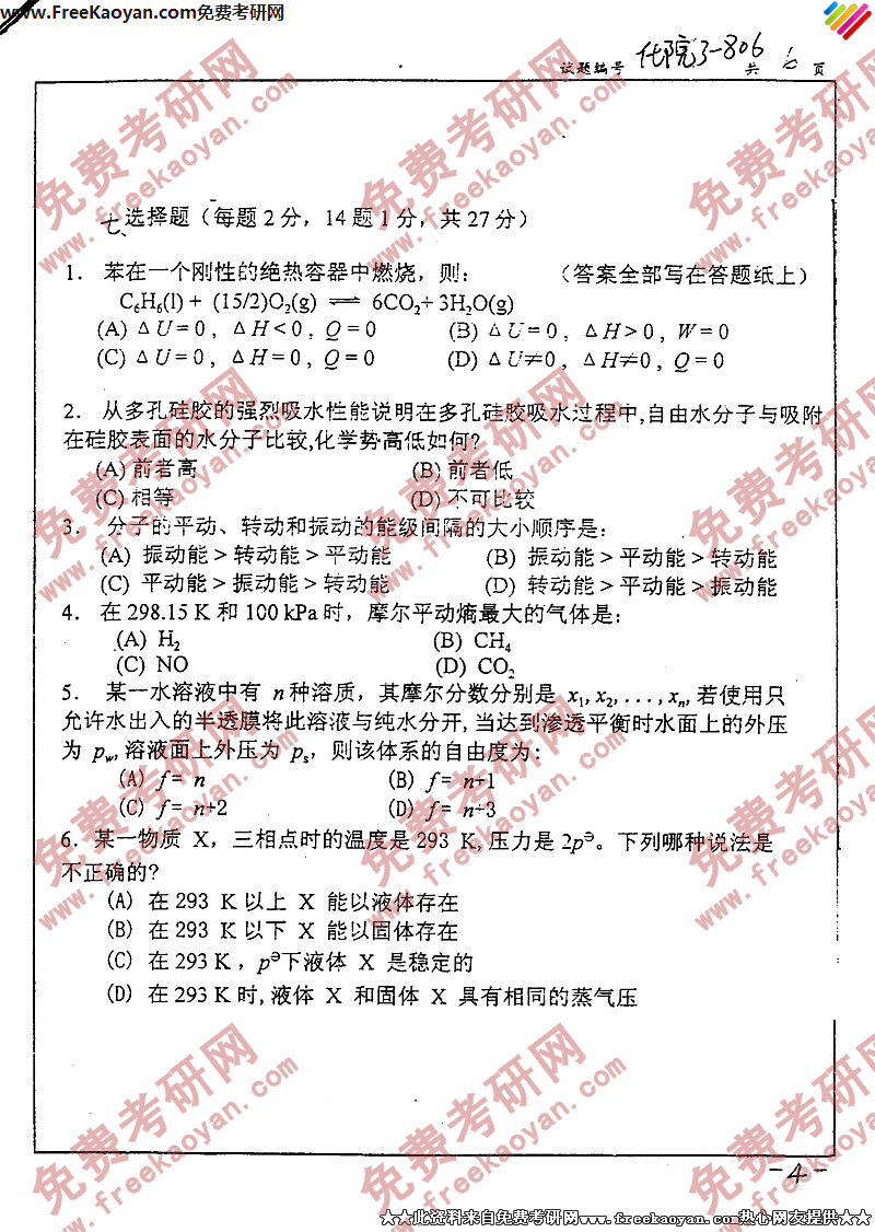 相关话题/考研真题 南京大学 物理化学 有机化学