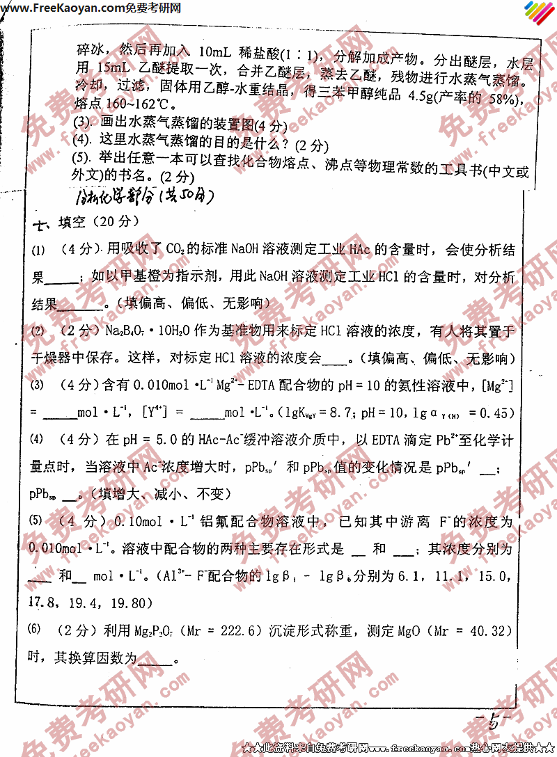 南京大学2004年考研真题-有机化学和分析化学(5)