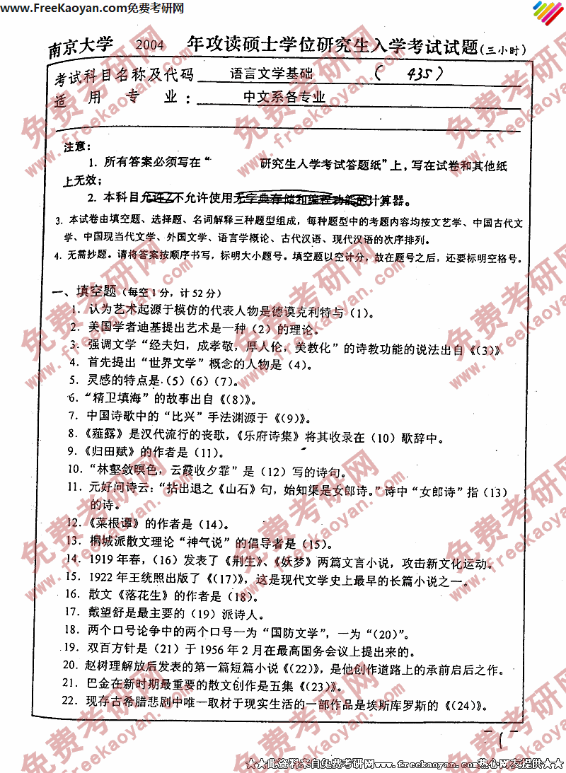 相关话题/南京大学 考研真题 语言文学基础