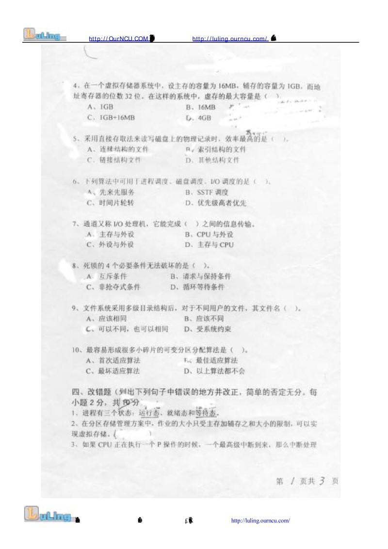 专业课考研经验 本站小编 FreeKaoyan 2018-01-23南昌大学2001年考研真题-操作系统