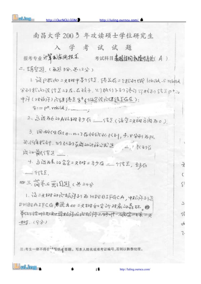 专业课考研经验 本站小编 FreeKaoyan 2018-01-23南昌大学2002年考研真题-数据结构