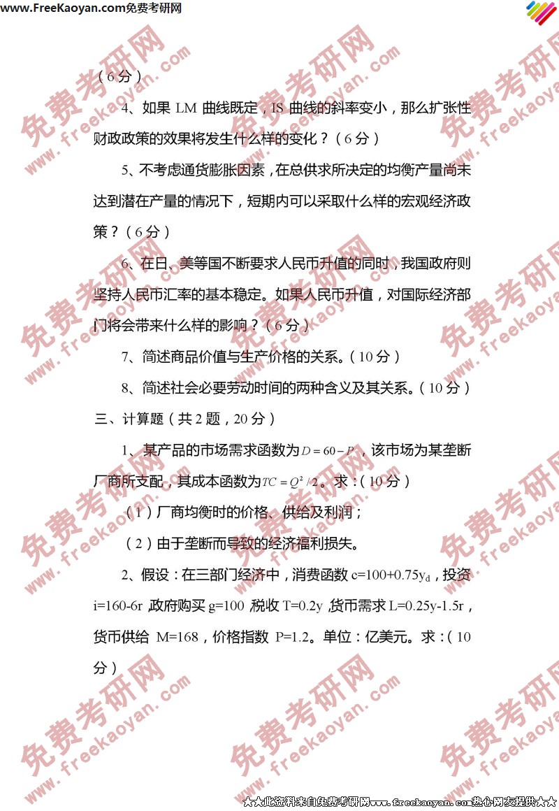 • 南京财经大学2005年考研真题-专业基础课(政治经济学)