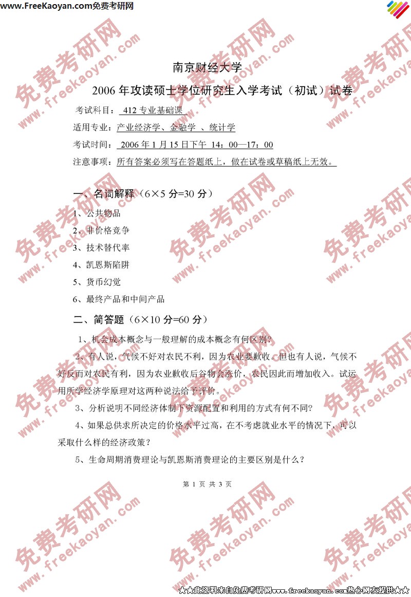 南京财经大学2006年考研真题-专业基础课(产业经济学、金融学、统计学专业)