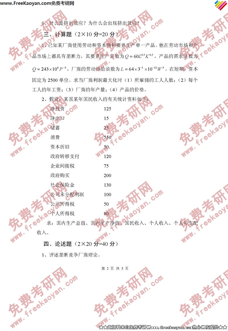 南京财经大学2006年考研真题-专业基础课(产业经济学、金融学、统计学专业)(2)
