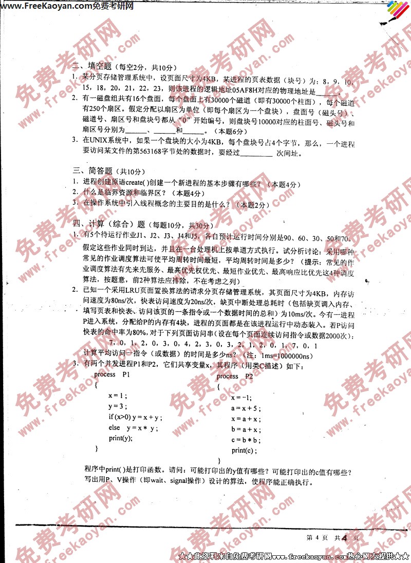 南京工业大学2006年考研真题-数据结构与操作系统(4)