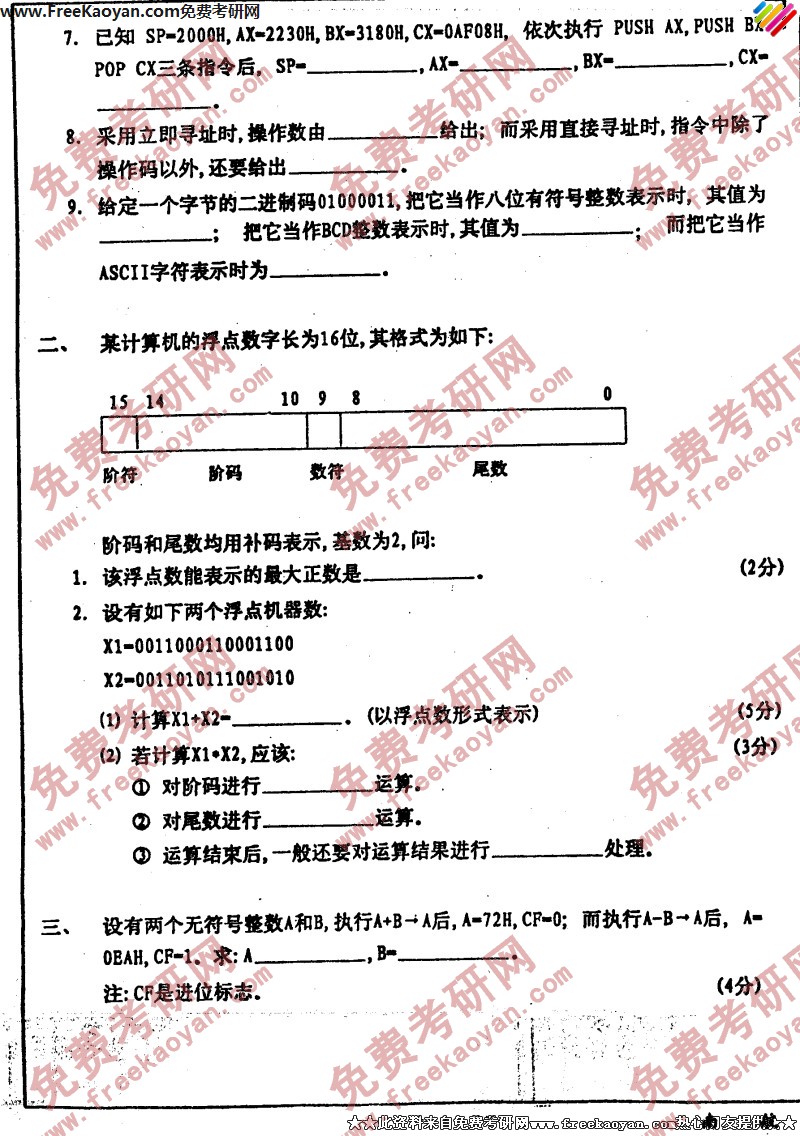南京航天航空大学1999年考研真题-计算机组成原理(2)