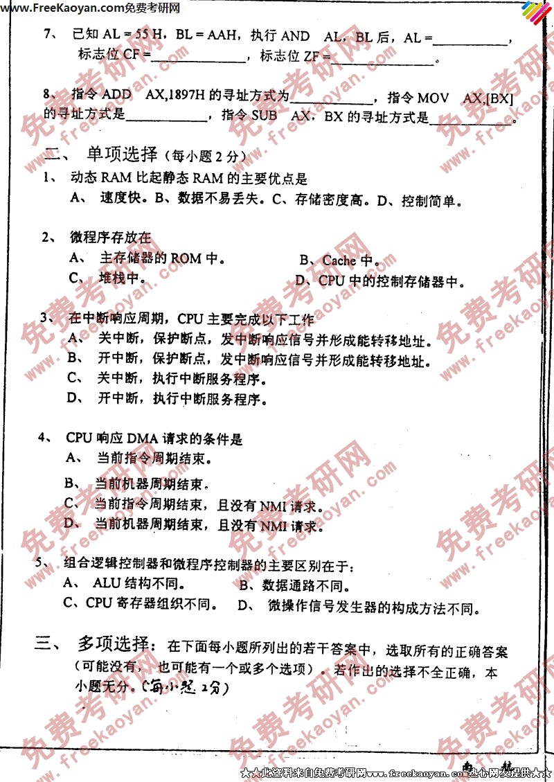 南京航天航空大学2000年考研真题-计算机组成原理(2)