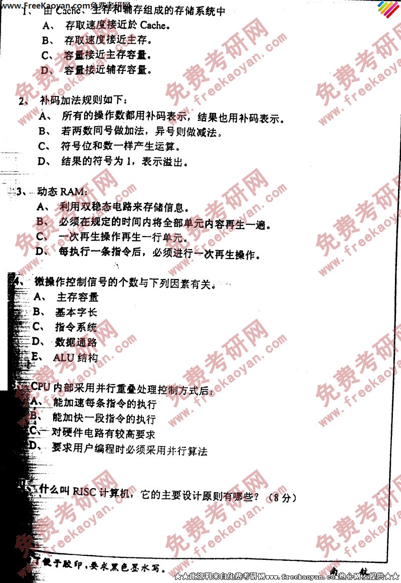 南京航天航空大学2000年考研真题-计算机组成原理(3)