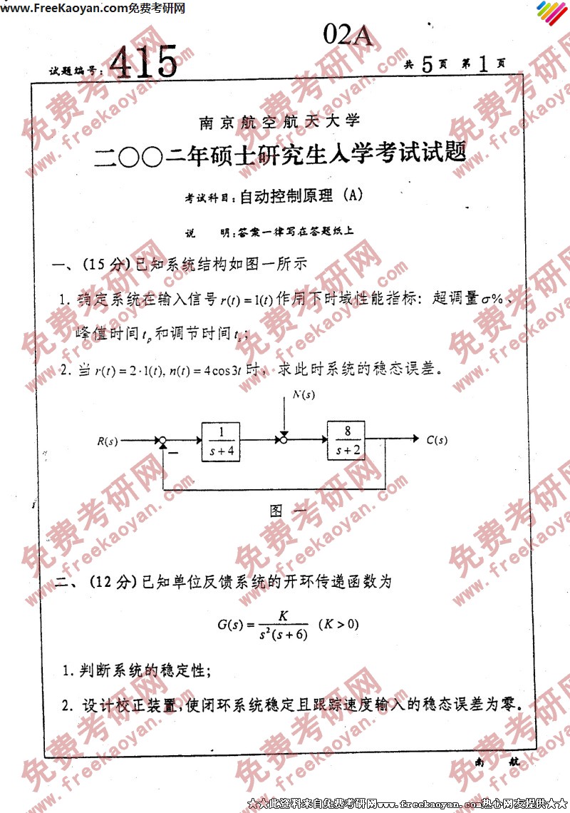 专业课考研经验 本站小编 FreeKaoyan 2018-01-23南京航天航空大学2002年考研真题-计算机组成原理