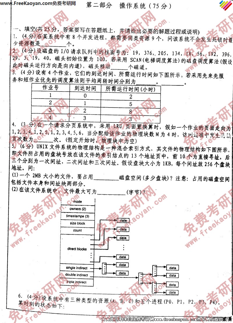 专业课考研经验 本站小编 FreeKaoyan 2018-01-23南京航天航空大学2003年考研真题-数据结构与操作系统