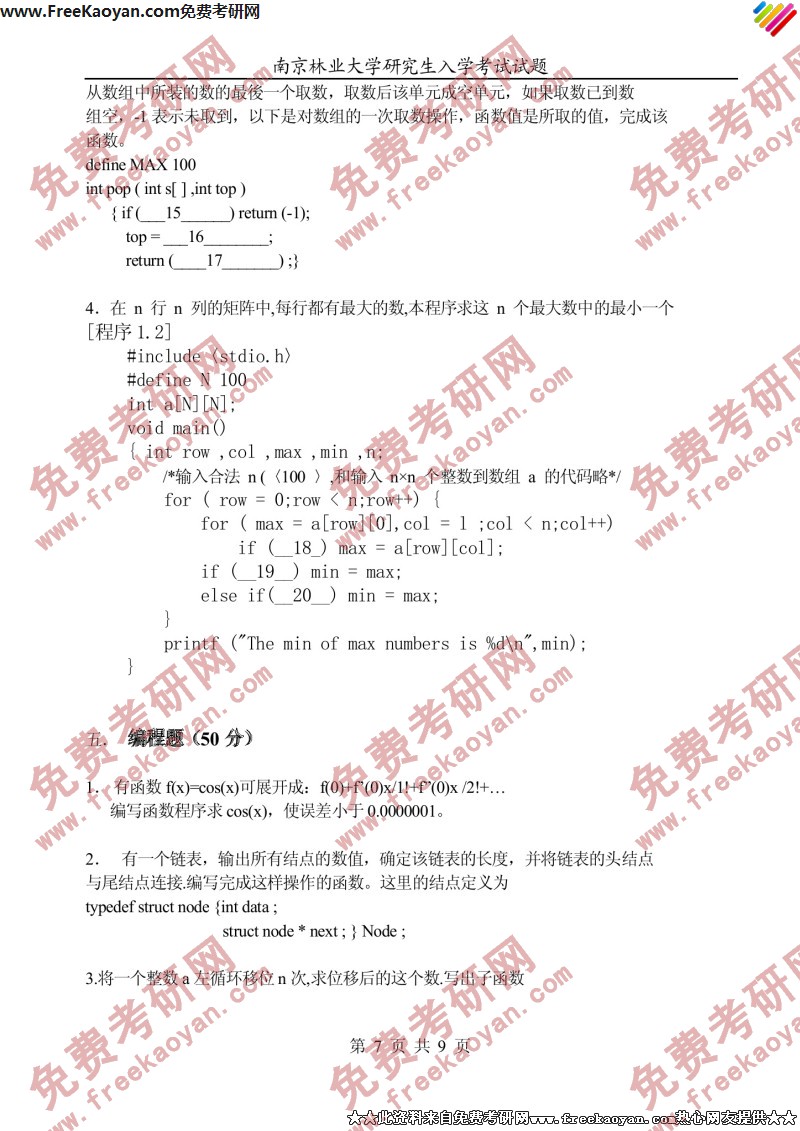 南京林业大学2003年考研真题-c语言(7)