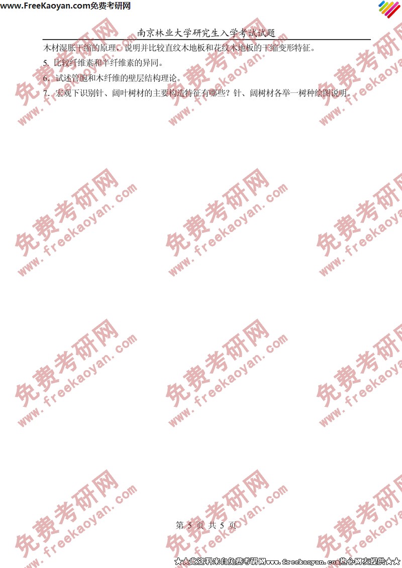 相关话题/考研真题 南京林业大学 木材