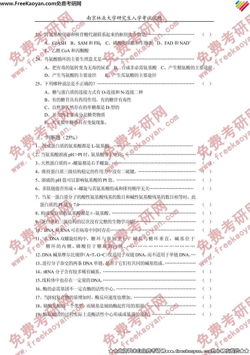专业课考研经验 本站小编 FreeKaoyan 2018-01-23南京林业大学2003年考研真题-木材化学含实验