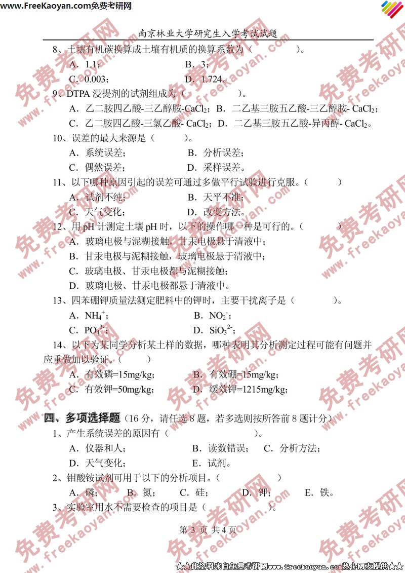 南京林业大学2003年考研真题-土壤农化分析(3)