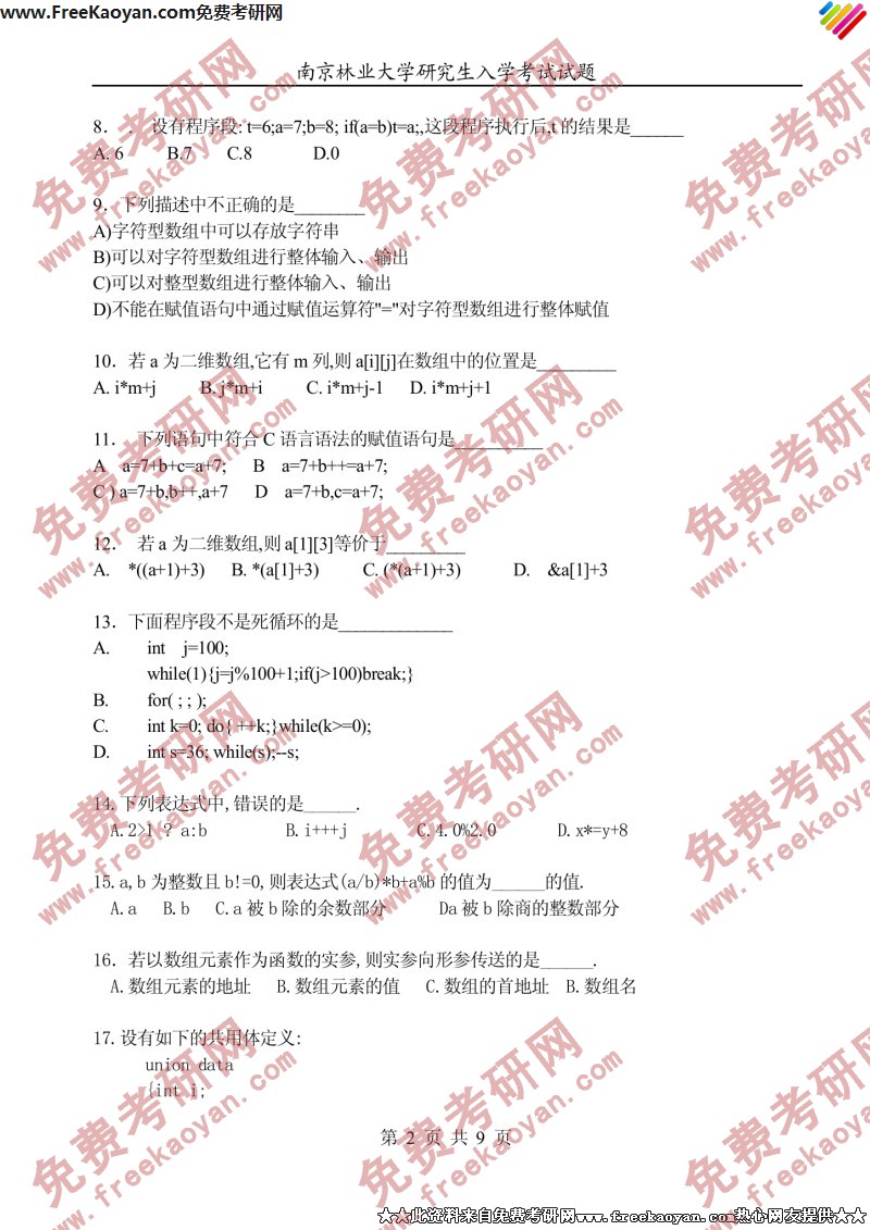 专业课考研经验 本站小编 FreeKaoyan 2018-01-23南京林业大学2003年考研真题-微机原理与应用