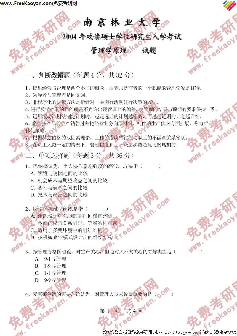 专业课考研经验 本站小编 FreeKaoyan 2018-01-23南京林业大学2004年考研真题-高等数学