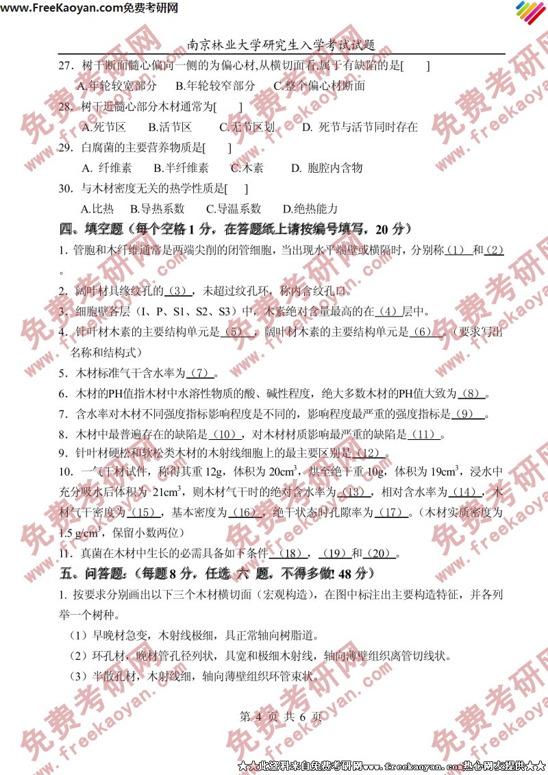 专业课考研经验 本站小编 FreeKaoyan 2018-01-23南京林业大学2004年考研真题-木材化学含实验