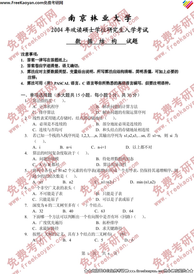 专业课考研经验 本站小编 FreeKaoyan 2018-01-23南京林业大学2004年考研真题-木材学