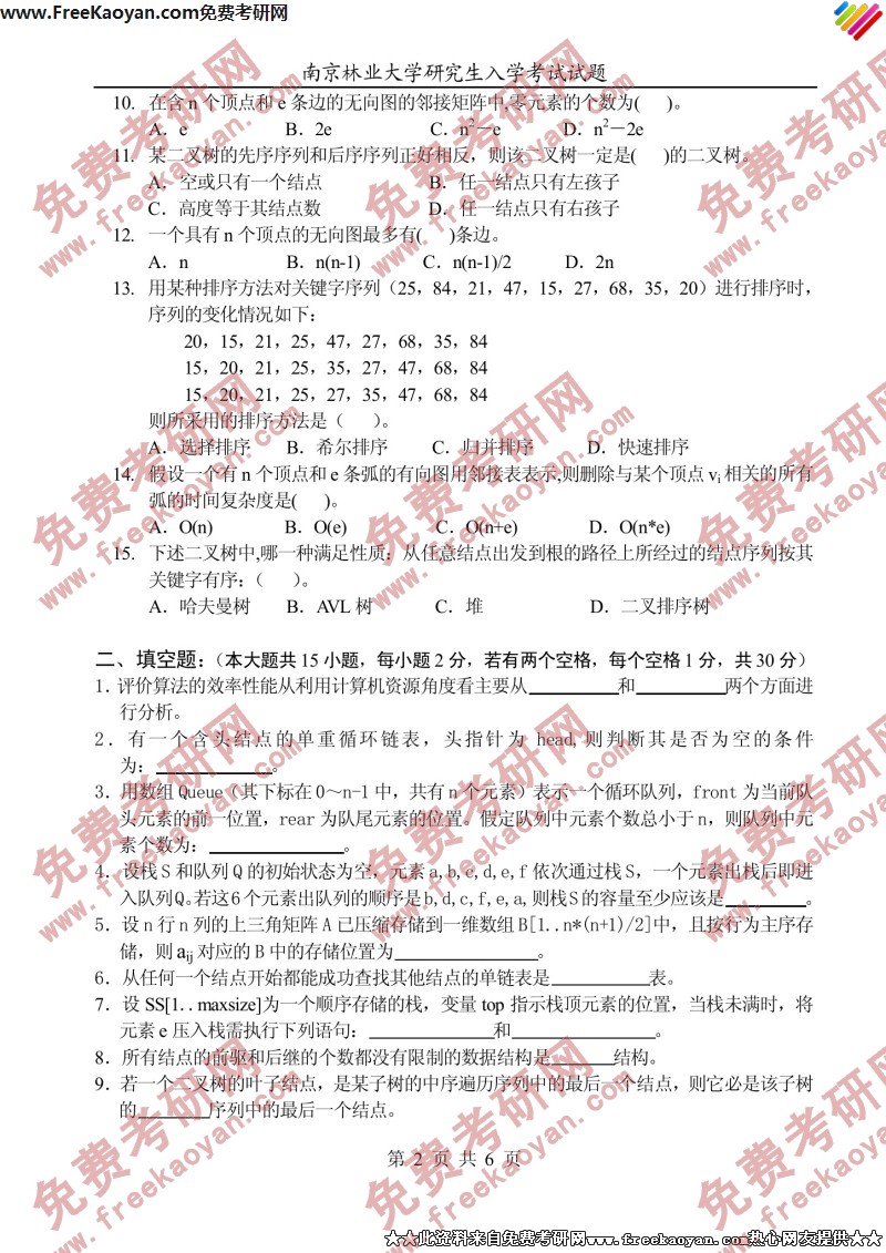 相关话题/南京林业大学 考研真题 数据结构