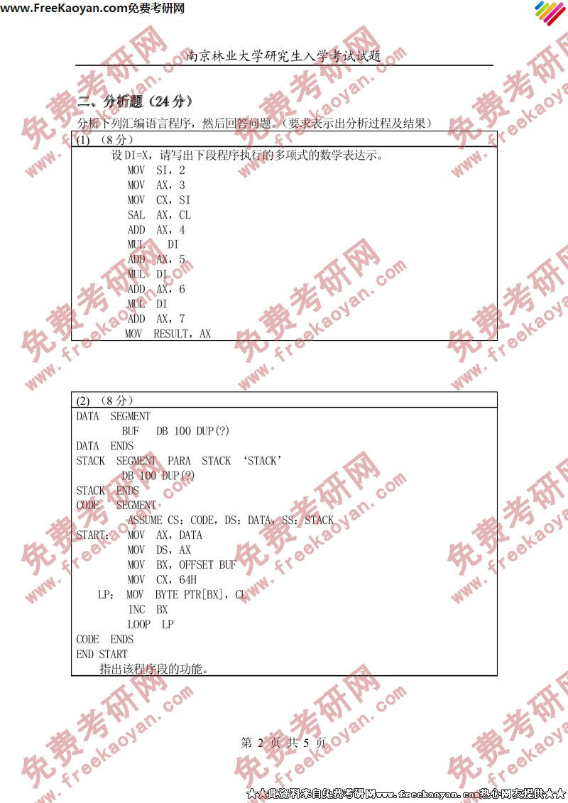 南京林业大学2004年考研真题-微机原理与应用(2)