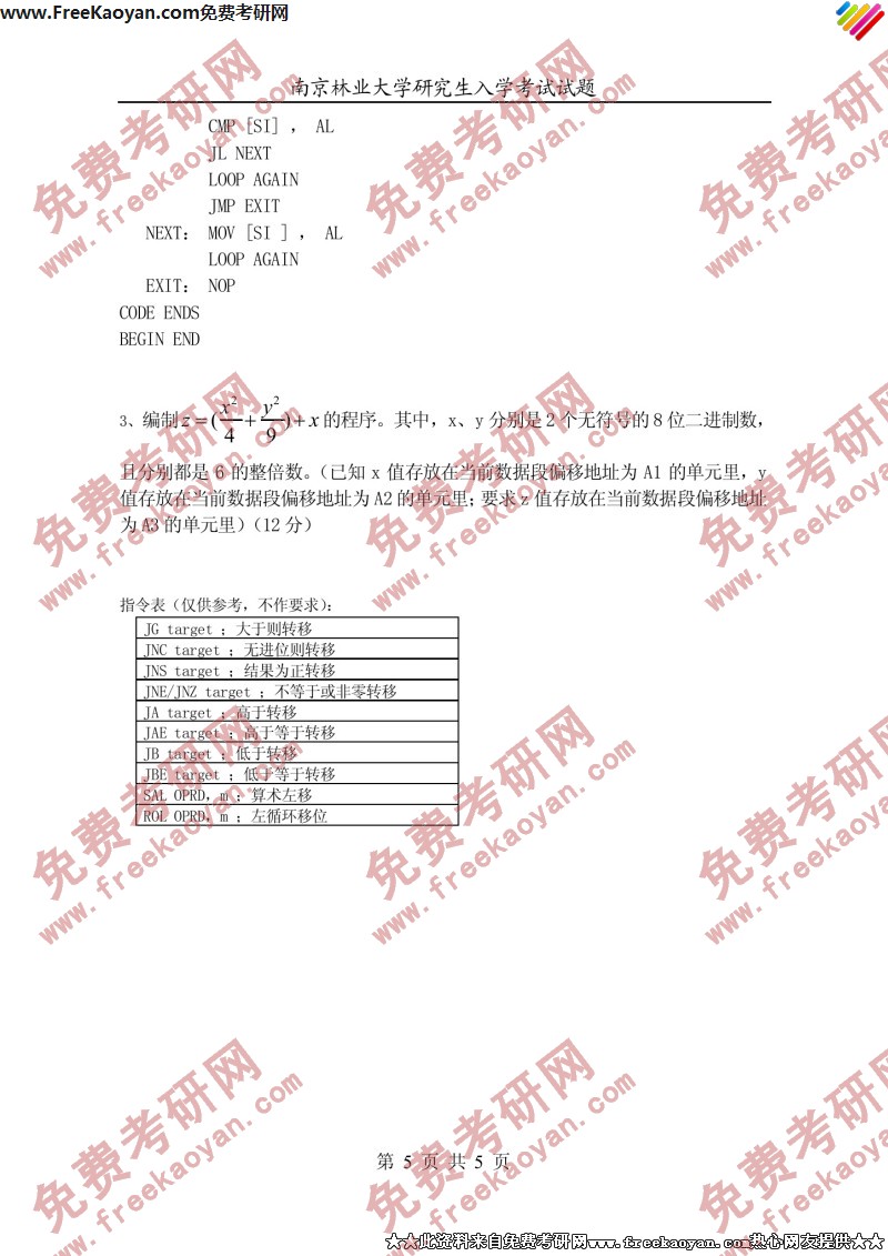 南京林业大学2004年考研真题-微机原理与应用(5)