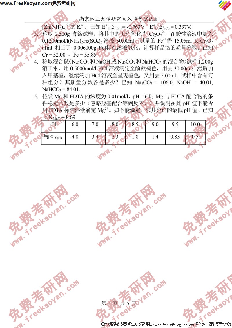 南京林业大学2004年考研真题-无机及分析化学(5)
