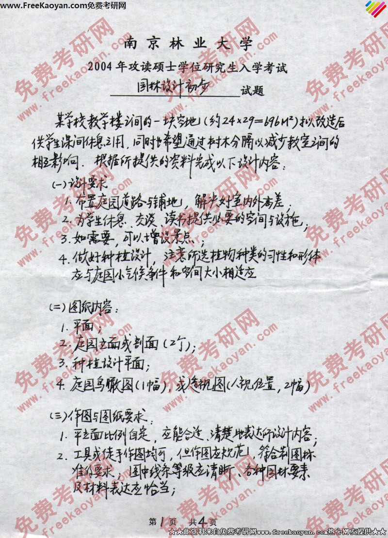 专业课考研经验 本站小编 FreeKaoyan 2018-01-23南京林业大学2004年考研真题-室内设计基础